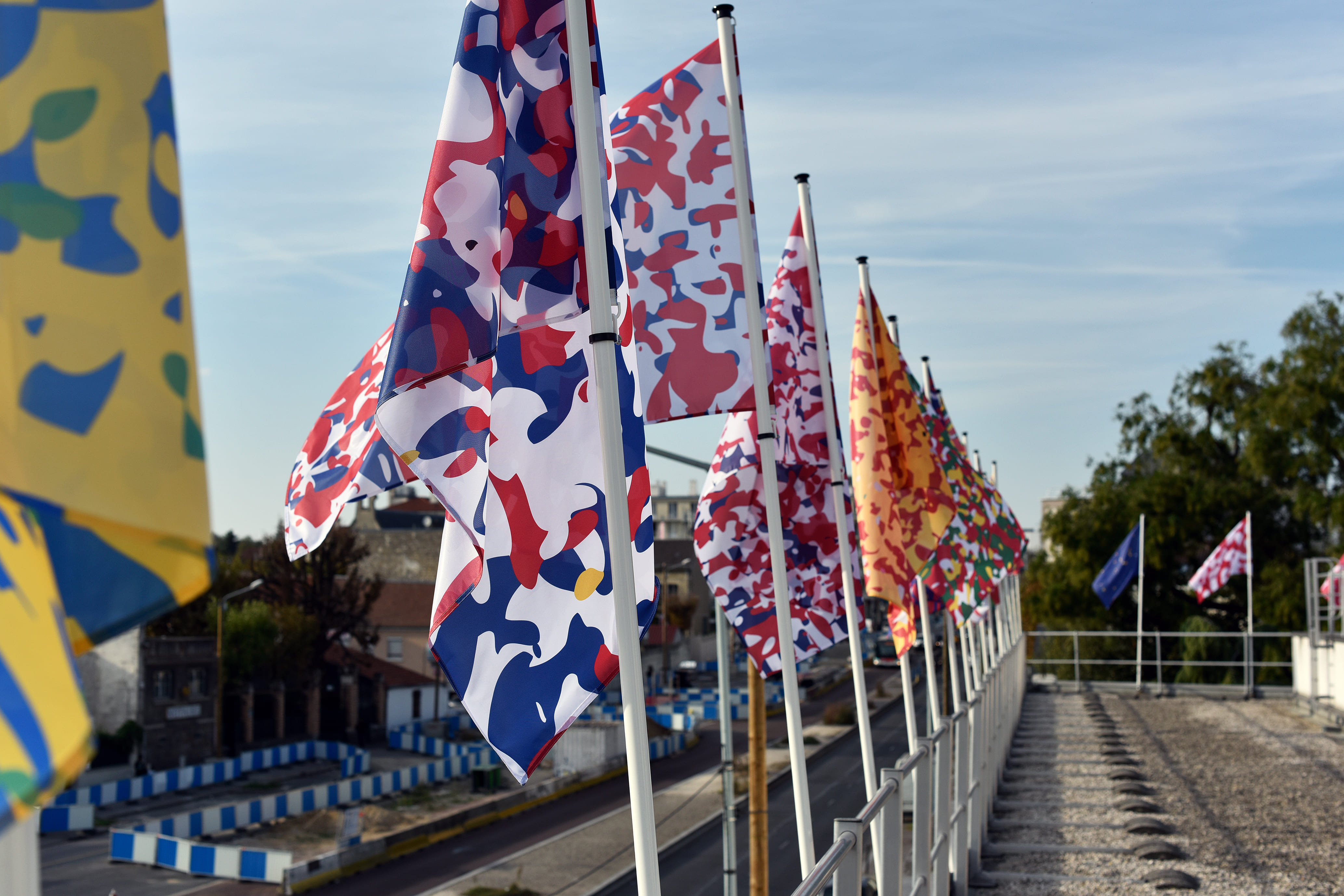 Ce projet proposé par le MAC VAL est un dispositif artistique composé de mâts qui permettent d’inviter régulièrement des artistes pour concevoir de nouveaux drapeaux. Le drapeau est un symbole, un support dont de nombreux artistes se sont saisis depuis les dernières décennies.
