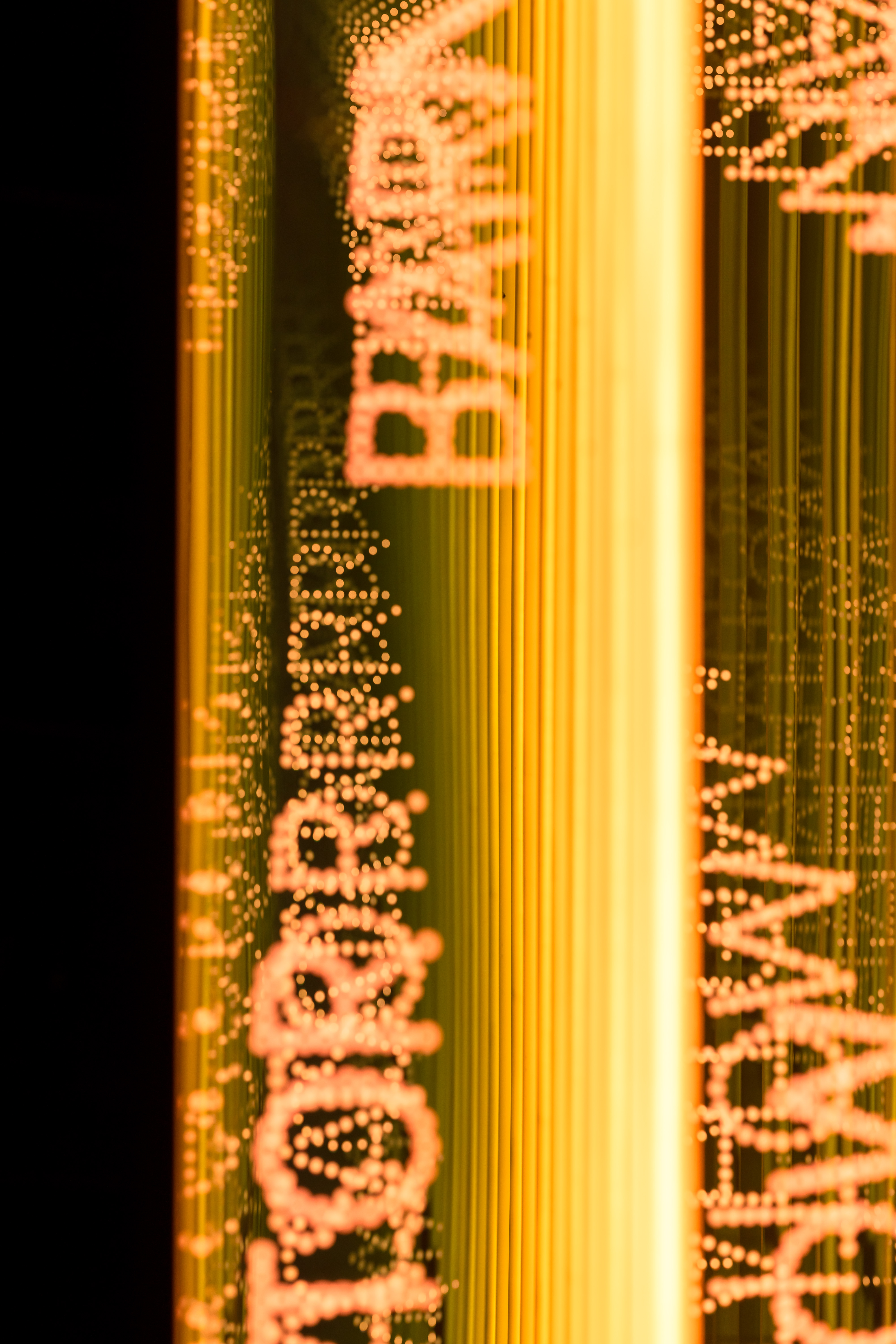 tubes LED, miroirs en dibond et sans tain, aluminium, lettrages sablés