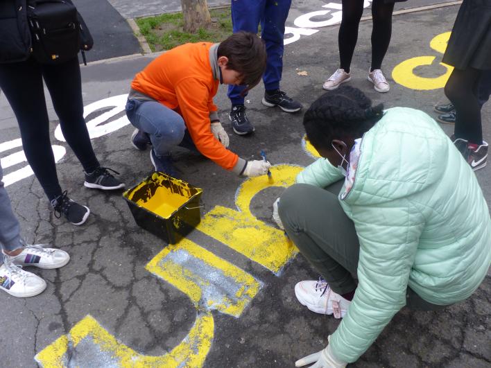 Intervention graphique sur le parvis de l’Hôtel de Ville de Saint-Ouen
