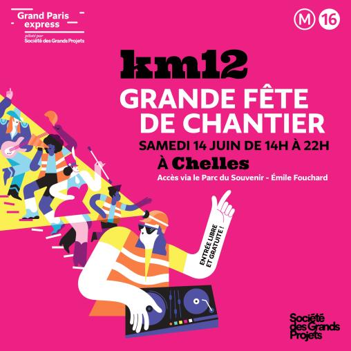 Pendant les travaux du Grand Paris Express, les KM – pour kilomètre – transforment les chantiers en lieux d’échange et de création où riverains, artistes, professionnels des travaux publics se rencontrent. Ces rendez-vous artistiques, culturels et festifs ont pour but de fédérer les énergies locales et réunissent les acteurs des territoires lors d’évènements conviviaux et festifs autour d’un repas de chantier et de performances.
